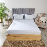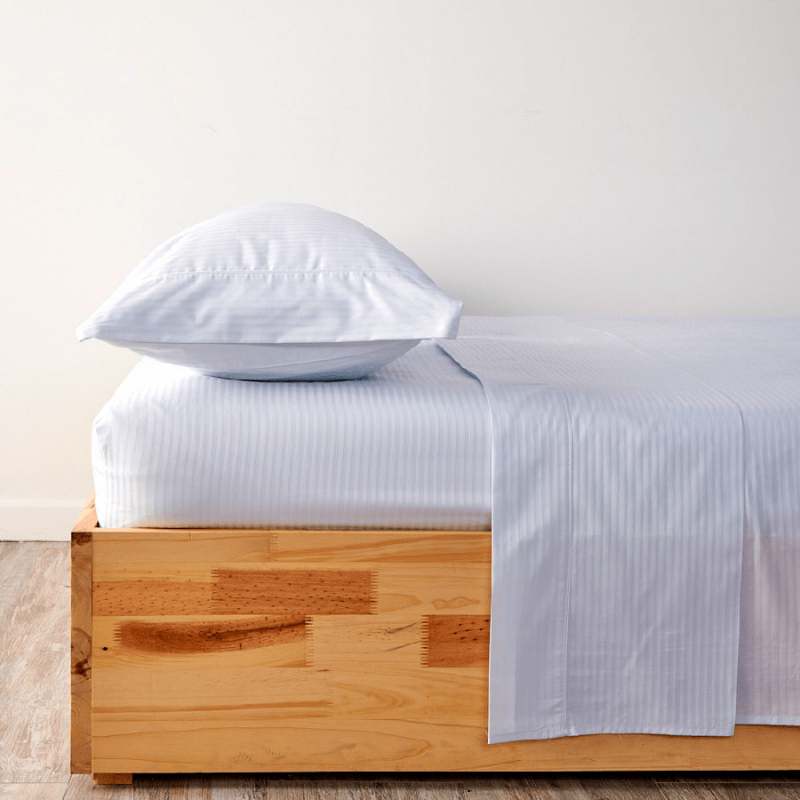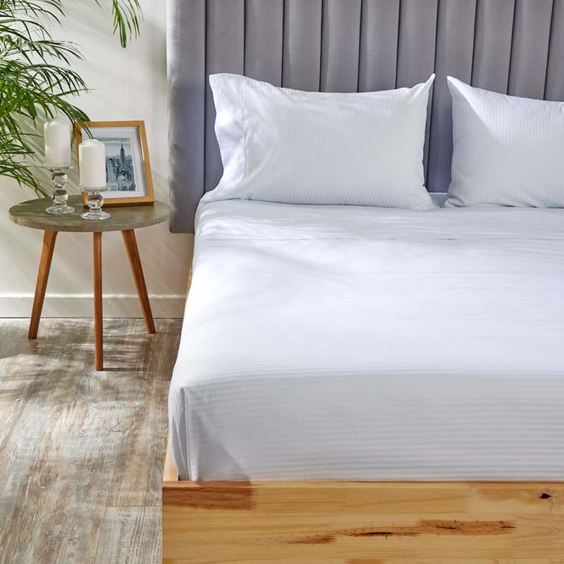 Juego de sábanas King, elaborado 100% algodón, color blanco, posee un diseño de lineas en orientacion vertical, incluye sabana plana y dos fundas. El tacto del algodón y la frescura del mismo con hilos más delgados y suaves, garantizan un producto que genera una mejor experiencia a la hora de dormir