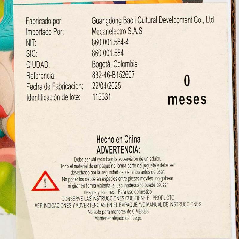 Un juguete didáctico pensado para bebés y niños pequeños, perfecto para estimular sus sentidos, coordinación y curiosidad a través del juego. Ideal para acompañar las primeras etapas de exploración, movimiento y descubrimiento. ✨ Características: * Material seguro y apto para bebés: Fabricado en plástico resistente, ideal para uso infantil, con bordes suaves y sin piezas peligrosas. *Diseño interactivo: Combina estímulos visuales, auditivos y táctiles — luces, sonidos o acciones que se activan con el movimiento o manipulación del juguete — para mantener al bebé entretenido y comprometido. *Estimulación motriz y sensorial: Permite que el bebé desarrolle coordinación mano ojo, motricidad fina y habilidades sensoriales al agarrarlo, girarlo o presionar partes del juguete. *Fomenta la exploración y el aprendizaje lúdico: A través del juego, el niño puede aprender causa efecto, experimentar con sonidos, colores y objetos, despertando su curiosidad natural. *Adecuado para primeras edades: Diseñado pensando en bebés o niños muy pequeños, ideal para sus primeras experiencias de juego didáctico.