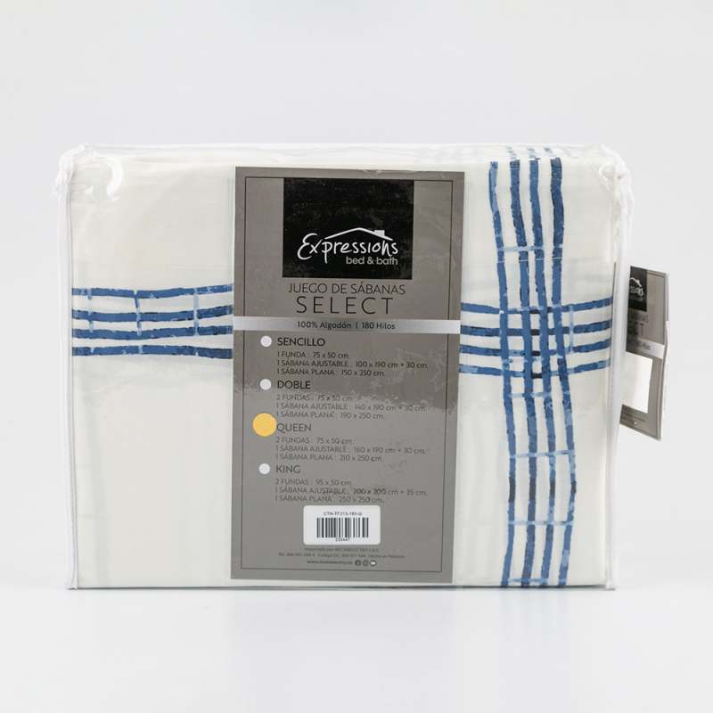Juego Sabanas Expressions Montana 180H Queen Blanco 100% Algodon