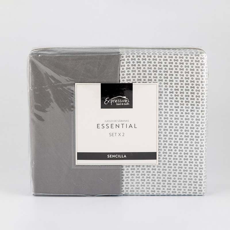 juego de sábanas Expressions Set Basic, tamaño sencillo, disponible en Gris. Cada juego incluye dos unidades, hechas de 100% poliéster. Este material es suave, duradero y fácil de cuidar, lo que lo hace ideal para un uso diario cómodo