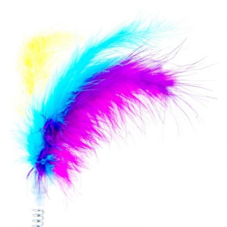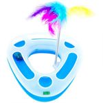 Material: Plástico. Diseño de circuito triangular con puntas redondeadas. pelota con cascabel en el interior. Resorte con plumas. Ideal para entretener a su gato mientras intenta atraparla pelota.