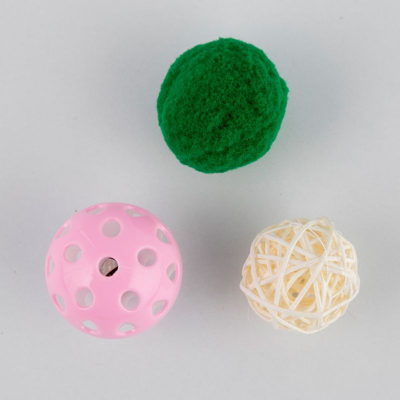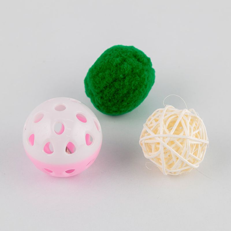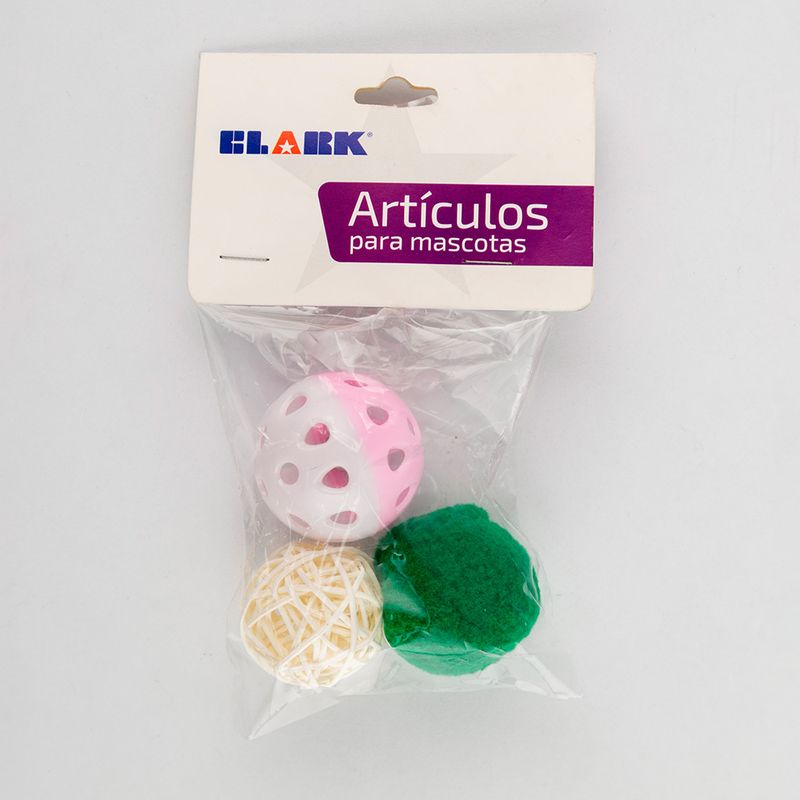 Juguete de bolas X3 Unds para gato. Dimensiones: 10x6x2cm. Los productos marcados como 'PRODUCTO SURTIDO' pueden no ser idénticos a los que aparecen publicados en las imágenes. Las imágenes son ilustrativas. Al comprar un producto identificado como producto surtido, aceptas que podrás recibir un producto con características y atributos tangibles diferentes a los que aparecen en las imágenes del sitio o la publicidad. Los productos surtidos mantendrán las propiedades físicas, químicas y técnicas necesarias para su funcionamiento y uso de acuerdo a su naturaleza.