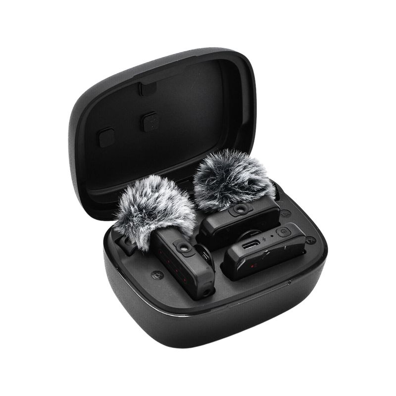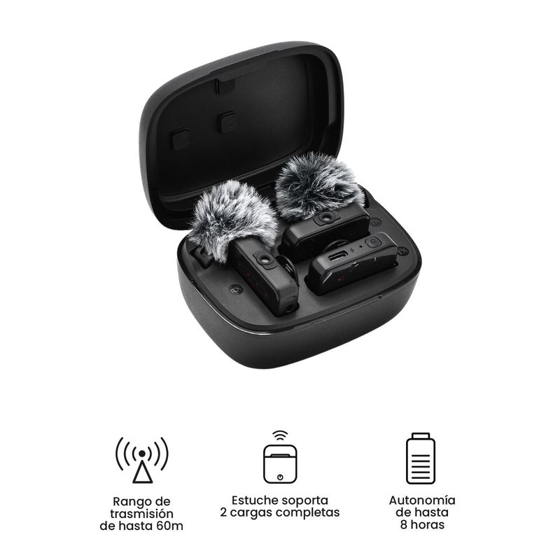Descubre el Kit de Micrófonos de Solapa Inalámbricos Creators, diseñado para llevar la calidad de tu audio al siguiente nivel. Este kit incluye dos micrófonos inalámbricos con transmisores, perfectos para captar diálogos claros y profesionales en cualquier entorno. Las coberturas de lana aseguran una excelente cancelación de ruido ambiental, mientras que el estuche de carga permite recargar los micrófonos y el receptor hasta dos veces, garantizando que siempre estés listo para grabar. Con batería independiente en cada micrófono, tendrás la flexibilidad de usarlos por separado cuando lo necesites. ¡Haz que tu contenido brille con un sonido excepcional!