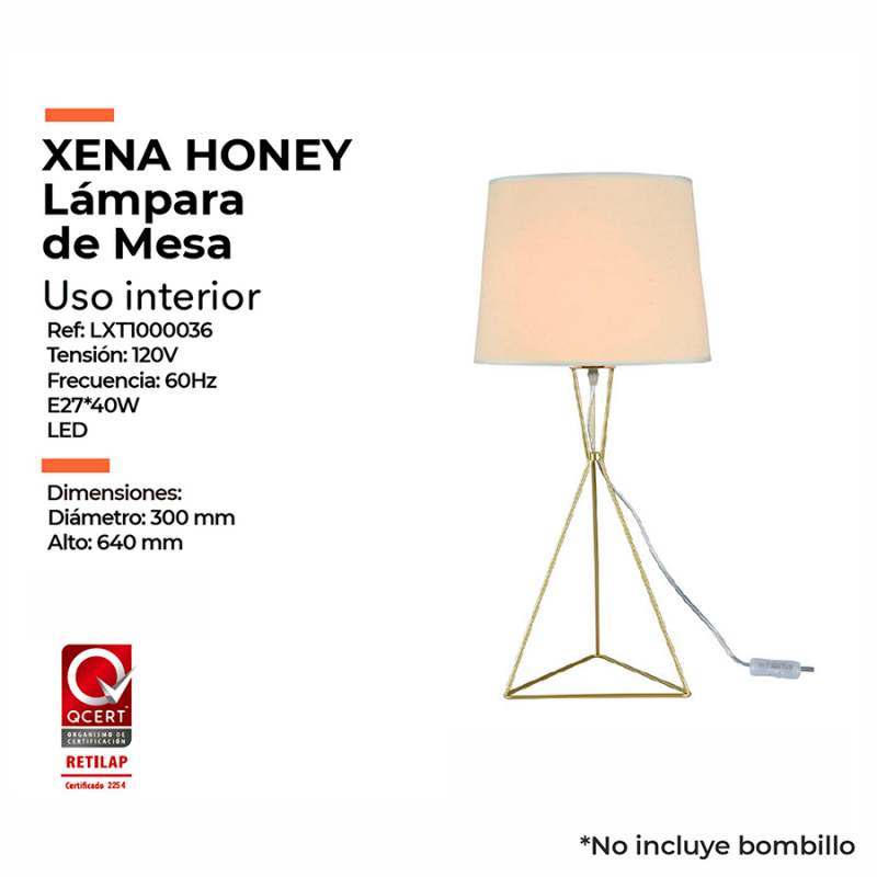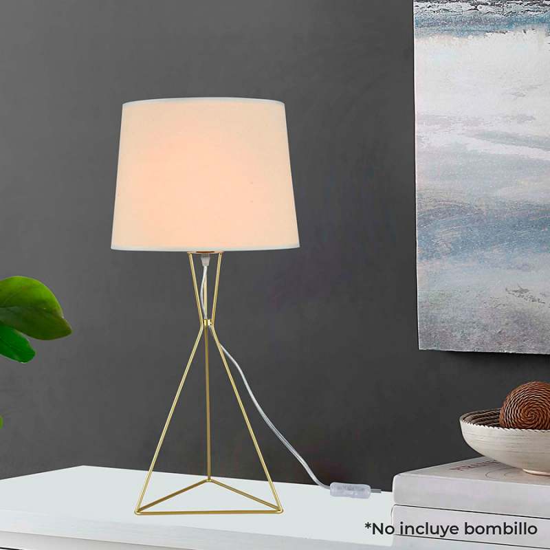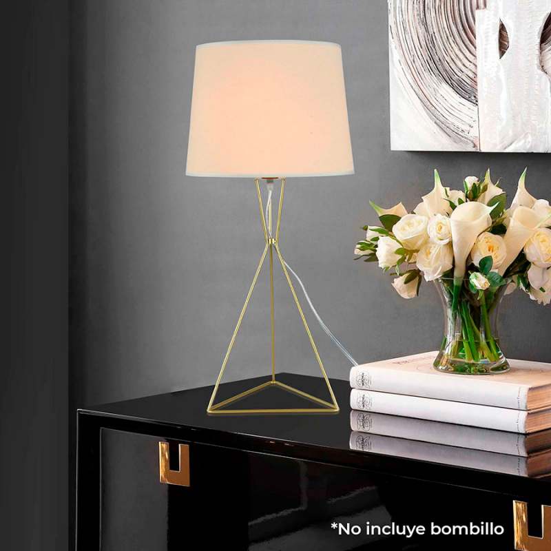 Tradicional Lámpara de Gran Porte Y Elegancia, Tiene Caperuza En Tela Y Base Metálica Dorada En Forma de Pirámide. Este Producto Cuenta Con Certificación Y Cumplimiento de Reglamentación Retilap