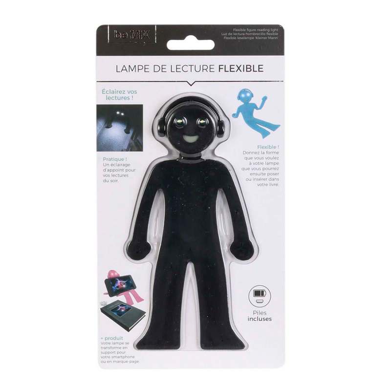 Ilumina tu lectura con poca luz y deja de cansar tus ojos con esta lámpara flexible con forma de hombre ¡100% original! Depende de ti darle la forma que quieras. Después podrás colocarla sobre la mesa o introducirla en tu libro. Otra posibilidad: ¡esta lámpara puede utilizarse como soporte para su smartphone o como marcapáginas! Detalles: Pilas incluidas / Dimensiones (cm): 16 x 1,3 x 8,3 / Materiales: 100% plástico PVC / Colores: Negro Rosa. Los productos marcados como 'PRODUCTO SURTIDO' pueden no ser idénticos a los que aparecen publicados en las imágenes. Las imágenes son ilustrativas. Al comprar un producto identificado como producto surtido, aceptas que podrás recibir un producto con características y atributos tangibles diferentes a los que aparecen en las imágenes del sitio o la publicidad. Los productos surtidos mantendrán las propiedades físicas, químicas y técnicas necesarias para su funcionamiento y uso de acuerdo a su naturaleza