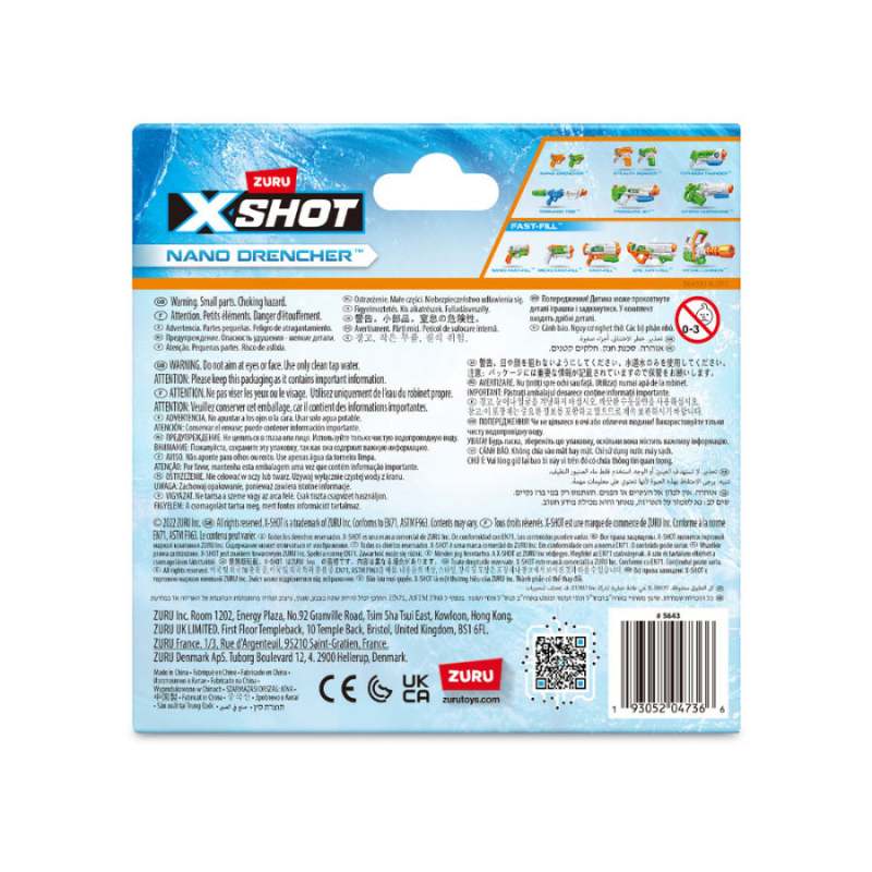 Acción De Gatillo¡El Nano Drencher Utiliza Una Acción De Gatillo Para Lanzar Agua Hasta 16 Pies/5 Metros! Capacidad De Agua Nano Drencher Puede Contener 80 Ml/3 Fl. Onz. De Agua Dentro Del Lanzador, Lo Que Te Deja Más Tiempo Para Jugar Y Menos Tiempo Para Recargar. Pequeño Y Compacto ¡Este Nano Drencher Pequeño Y Compacto Te Permite Empapar A La Competencia Sin Ocupar Mucho Espacio De Almacenamiento! El Paquete Incluye 1 Pistola De Agua Xshot Water Warfare Nano Drencher Advertencias Peligro De Asfixia -Piezas Pequeñas - No Apto Para Niños Menores De 3 Años Edad Recomendada 4+ Años. Promesa Xshot: Nuestra Misión Es Ofrecer Valor A Nuestros Fans En Todo El Mundo. Nuestra Promesa 'Up Your Game' Es Brindar Una Combinación De Excelencia En El Diseño, Calidad Líder En El Mercado Y Precios Inmejorables.