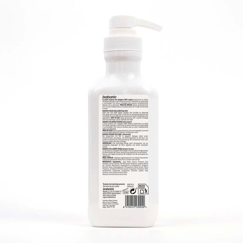 Leche corporal Colageno, Reafirmante intenso, antiflacidez, antiedad avanzado, hidratación 24hr. 93% ingredientes de origen natural. Leche corporal de rápida absorción formulada para pieles maduras. Con colágeno que no es de origen animal, sino que es obtenido de plantas silvestres. Proporciona un efecto antiedad avanzado y reafirmante de la piel, aumentando su elasticidad y luminosidad. Con textura ultraligera para vestirse inmediatamente después de su aplicación. Testado Dermatológicamente.. Uso sobre la superficie corporal. Aplicar sobre piel sana. Aplicar generosamente con un suave masaje hasta su completa absorción, puede utilizarse día y noche.
