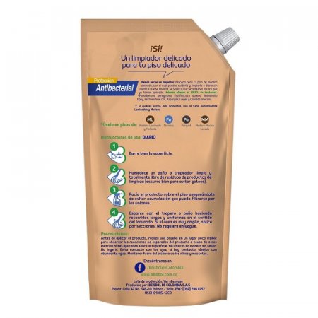 Limpiador de pisos laminados y madera elaborado con tensoactivo no iónico, polímero, agente desinfectante, acido orgánico, agente secuestrante, fragancia y color. Este brinda protección antibacterial, especial para maderas de todo color. Tiene aroma a bambú y evita levantamientos, soplos o que remueva la cera ya aplicada. Además, es ideal para pisos en madera laminada o flotante, fórmica, parquet y madera maciza lacada. Para uso diario y con un contenido de 450ml.