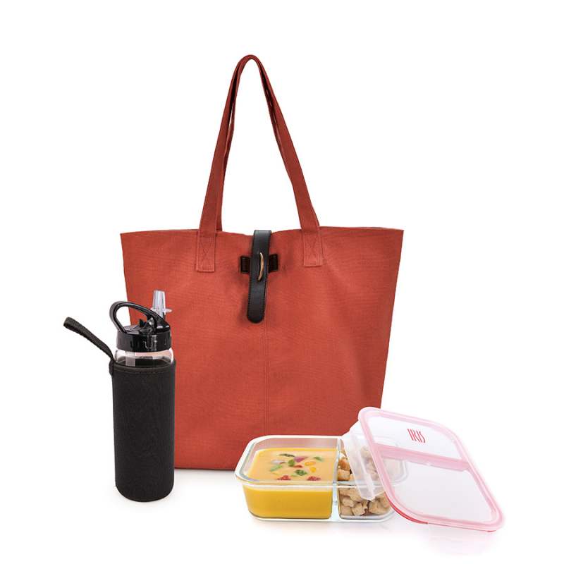 Lonchera multifunción con interior plastificado para limpiar fácilmente, incluye bolsillo interior para celular, llaves u objetos pequeños y bolsillo de rejilla en el interior para colocar una botella. Ideal para llevar tu comida o un snack junto con tus cosas personales. Tejido exterior: 100% Algodon natural. Capacidad: 15L Color: Cafe Medidas: 37 x 45,5 x 15,5Cmts