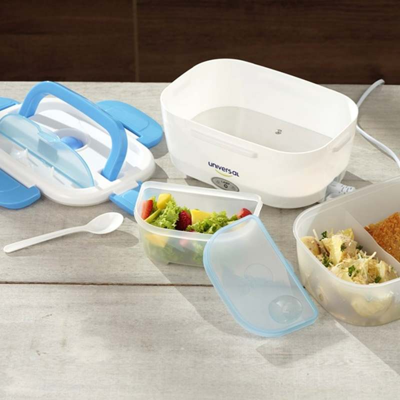 Lonchera eléctrica Práctica expres, Azul en polipropileno, recipiente principal removible mucho más fácil de limpiar, cuenta con un recipiente secundario con tapa independiente con capacidad de 400 ml. cierre hermético evita los derrames. Solo para uso domestico. Leer las instrucciones de uso. Cuenta con un indicador luminoso para que sepas cuando está calentando, además al usar la lonchera eléctrica ahorras energía, ya que el consumo energético es mucho menor al de un microondas. Su potencia es de 50W, suficientes para disfrutar de tus alimentos en tan solo 30 minutos, no es necesario agregar agua en tus preparaciones, con unas pocas gotas basta para conserva los nutrientes de tus alimentos y consumirlos con temperatura ideal. Incluye una cuchara plástica y un compartimiento en la tapa para guardarla, además en la tapa encuentras un escape de vapor para evitar accidentes al abrir la tapa. Su cable es removible, lo que facilita el almacenamiento, transportarla y limpiarla.