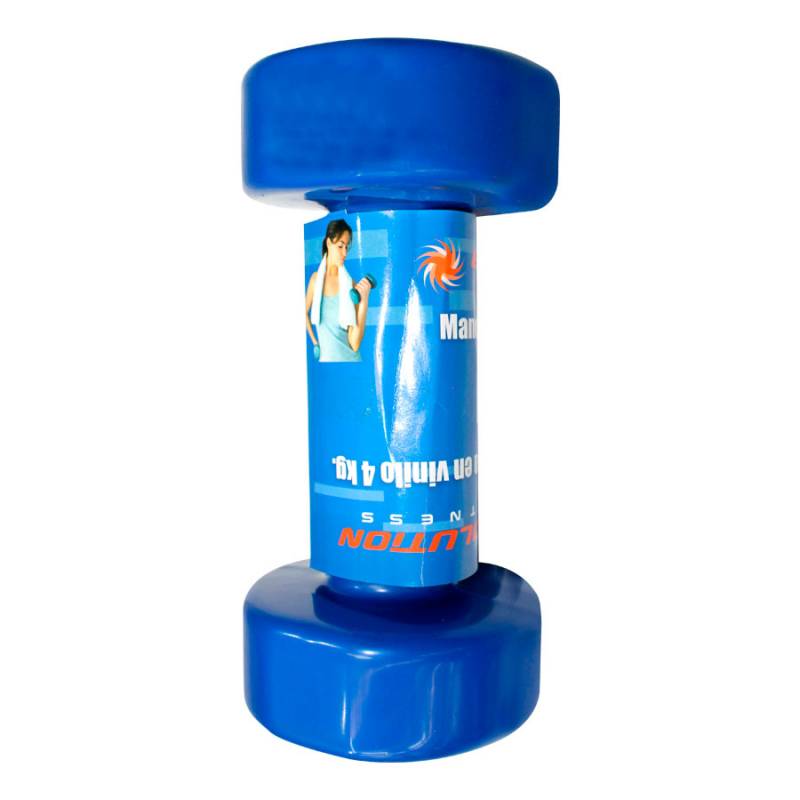 Mancuerna de Vinilo 4 Kilogramos Evolution Fitness. Esta mancuerna está elaborada con vinilo, la cual cuenta con un revestimiento suave, que al mantenerse seco garantiza que esta no se resbale mientras la utilizamos, adhiriéndose a nuestras manos cual si fuere pegamento: así, evitamos que la mancuerna pueda resbalarse y caer, ocasionando cualquier tipo de accidentes. Diseñada para sesiones de entrenamiento pesadas e intensas. Material: vinilo. Color: azul. Antideslizante. 4 Kg. Marca: Evolution