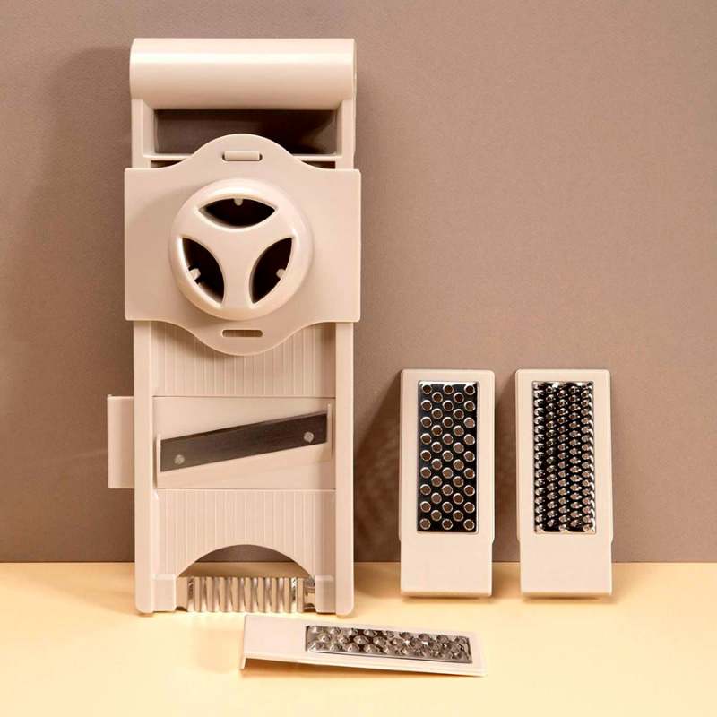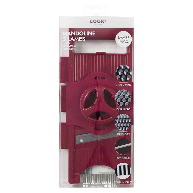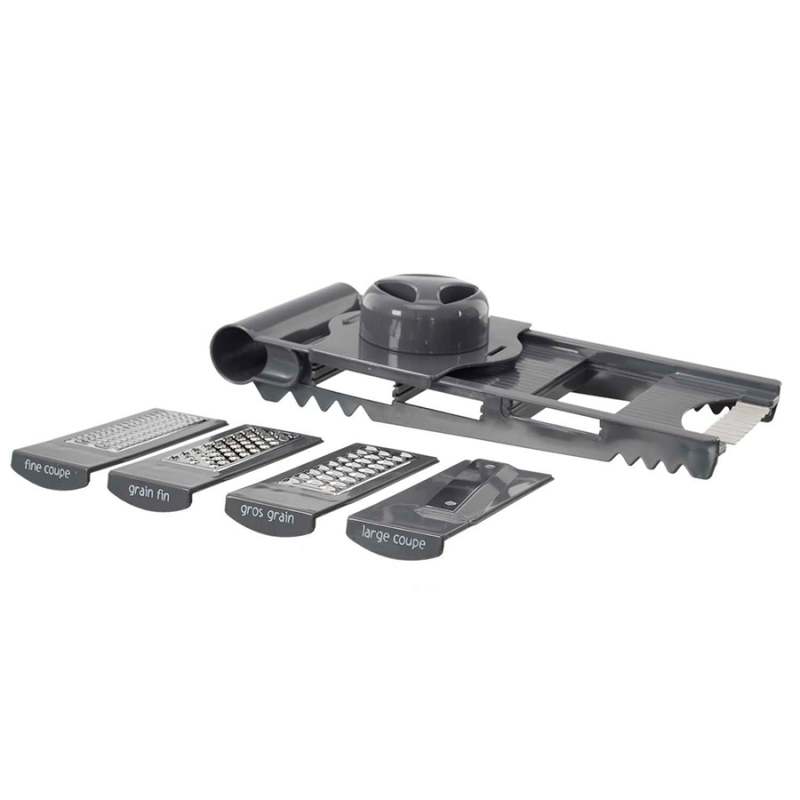 Mandolina easy make 5 cuchillas surtido. Esta mandolina de aspecto colorido ofrece 5 cuchillas para acompañarle eficazmente durante sus preparaciones. Este juego de cuchillas reversibles le permitirá cortar, rallar y picar con facilidad. detalle : 3 cuchillas para rallar - 2 cuchillas para cortar. Los productos marcados como 'producto surtido' pueden no ser idénticos a los que aparecen publicados en las imágenes, las imágenes son ilustrativas. al comprar un producto identificado como producto surtido, aceptas que podrás recibir un producto con características y atributos tangibles diferentes a los que aparecen en las imágenes del sitio o la publicidad, los productos surtidos mantendrán las propiedades físicas, químicas y técnicas necesarias para su funcionamiento y uso de acuerdo a su naturaleza.