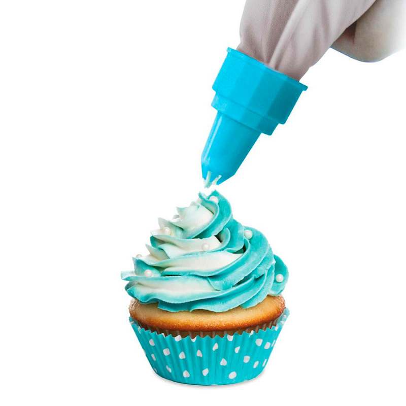 Manga+decorador lilycook setx2+4 decoradores. ¡Enamórate de esta manga pastelera doble y mejora la presentación de tus pasteles caseros! 4 mangas pasteleras de formas diferentes azul yrosa 30.5x27x27 cm 50 % plástico.