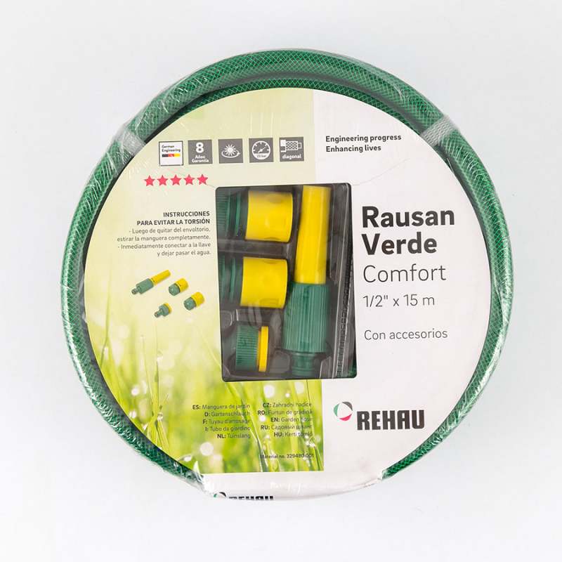 Manguera REHAU Rausan de 1/2 x 15m con acoples rapidos listos para usar, todo incluido