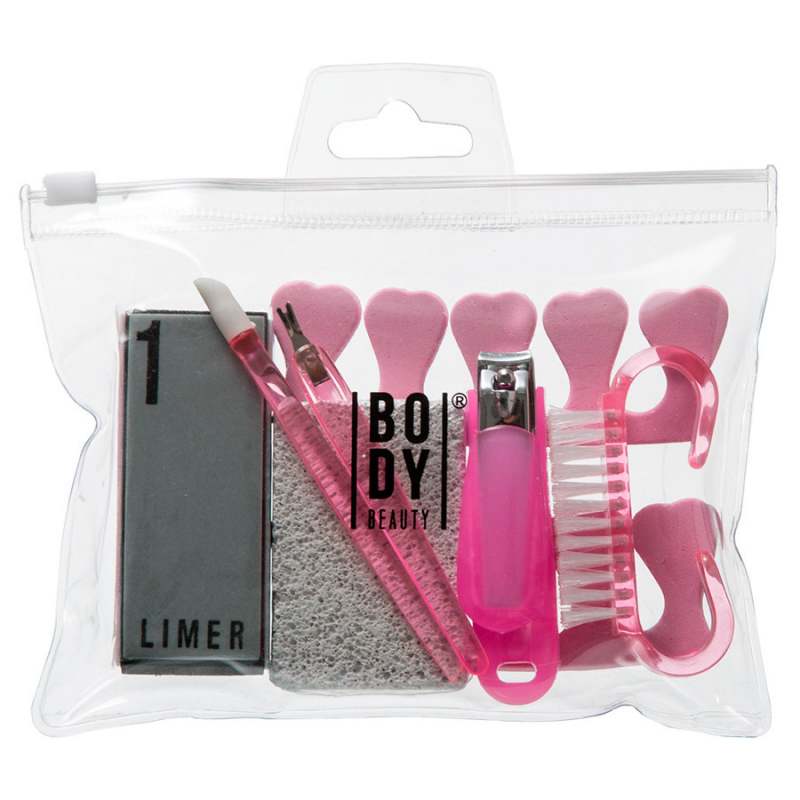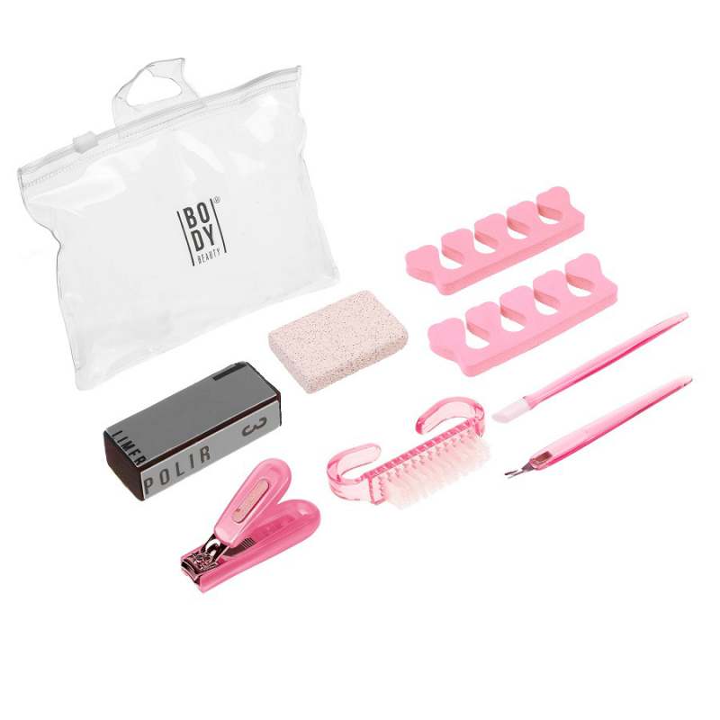 Set 6pz manicure y pedicure surtido. Marca: Body Beauty. Color: Gris o rosado. Materiales: Polipropileno, Poliestireno. Atributos adicionales: Incluye corta uñas, cepillo para uñas, lima, separador dedos de los pies, removedor de cuticula, piedra pómez Los productos marcados como 'PRODUCTO SURTIDO' pueden no ser idénticos a los que aparecen publicados en las imágenes. Las imágenes son ilustrativas. Al comprar un producto identificado como producto surtido, aceptas que podrás recibir un producto con características y atributos tangibles diferentes a los que aparecen en las imágenes del sitio o la publicidad. Los productos surtidos mantendrán las propiedades físicas, químicas y técnicas necesarias para su funcionamiento y uso de acuerdo a su naturaleza.