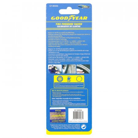 Manometro elaborado en acero inoxidable. cobre y termoplástico ABS. Color plateado. Registra 10 - 120 PSI presición y eficacia. Diseño con un clip de bolsillo para sujetarlo a bolsillo de ropa facilitando su uso. Incrementa la estabilidad y seguridad en el manejo a largas distancias. Incluye dos tapones para válvula. Cuatro barras de presión 2 x 10 - 120 PSI. 1 x 1 - 8 BAR. 1 x 69 - 827 KPA. Ayuda a mantener la presión correcta de los neumáticos para mejor manejo y seguridad. Elaborado en China.