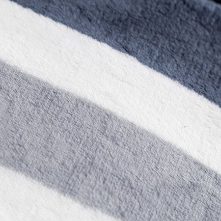 Mantas flannel, 2 unidades, una con diseño de rayas, color blanco, azul y gris, la otra solida color azul. Dimensiones: 110x140cm