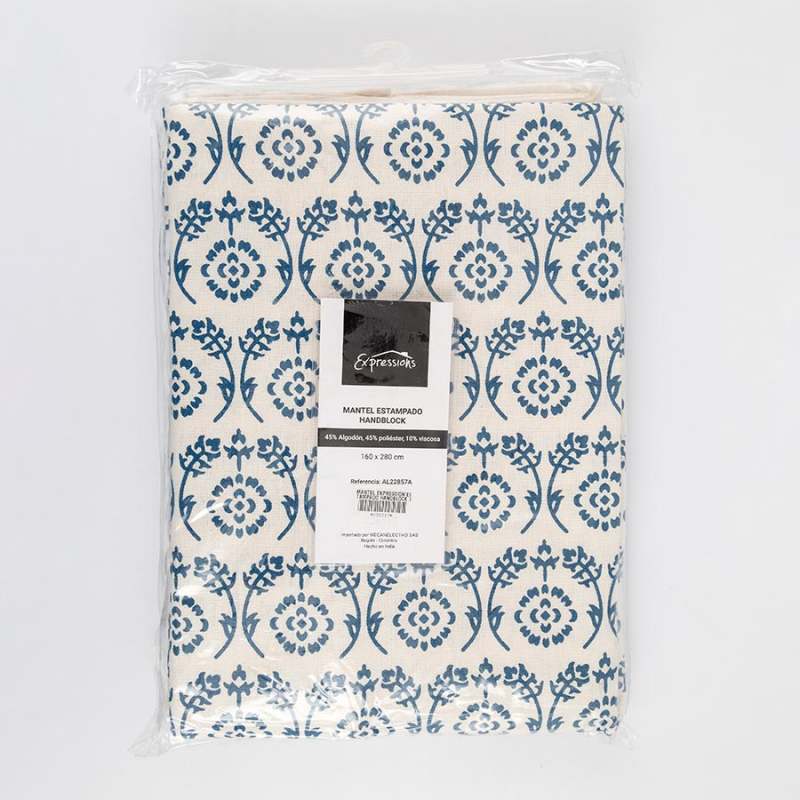 Mantel de mesa, fabricado 45% algodón, 45% poliester y 10%viscosa, estampado. Dimensiones: 210x150cm