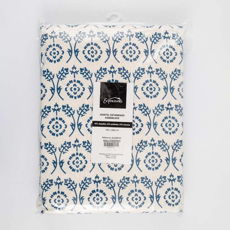 Mantel de mesa, estampado, elaborado 45% algodón, 45% poliéster y 10% viscosa. Dimensiones: 180x260cm