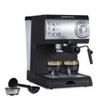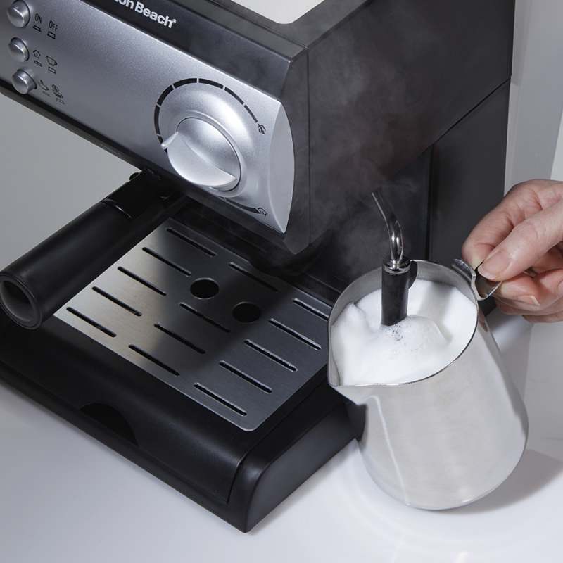 Máquina de Café Expresso y Cappuccino Hamilton Beach 40715 Negro Hamilton Beach® Máquina de Expresso y Cappuccino • Disfruta en casa de un expresso como en la mejor cafetería gracias a la potente bomba de espresso de 15 bares de presión • Disfruta un espresso perfecto cada vez — prepara lattes y cappuccinos fácilmente como un barista gracias al espumador de leche • Prepara 2 tazas simultáneamente • Fácil de llenar con el depósito de agua removible de 1.5 L de capacidad • Partes removibles fáciles de limpiar • Funciona con cápsulas suaves o con café molido
