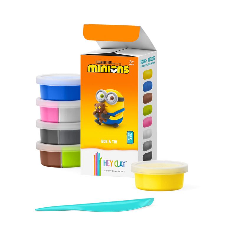 ¡Crea tus propios Minions con el Set de Plastilina HEY CLAY! Este set incluye 5 latas de plastilina de secado al aire en 8 colores diferentes, perfectas para dar vida a Bob y su muñeco Tim de la película Minions. Con la aplicación interactiva de Hey Clay, disponible para móviles y tabletas, los niños pueden seguir paso a paso los video-tutoriales y esculpir a sus personajes favoritos. La plastilina es ligera, suave y no se pega a las manos ni a las superficies, garantizando una experiencia de juego limpia y divertida. Ideal para niños a partir de 3 años, este set no solo fomenta la creatividad, sino también la motricidad fina y la coordinación ojo-mano. ¡Haz que la imaginación de tus hijos vuele con HEY CLAY!