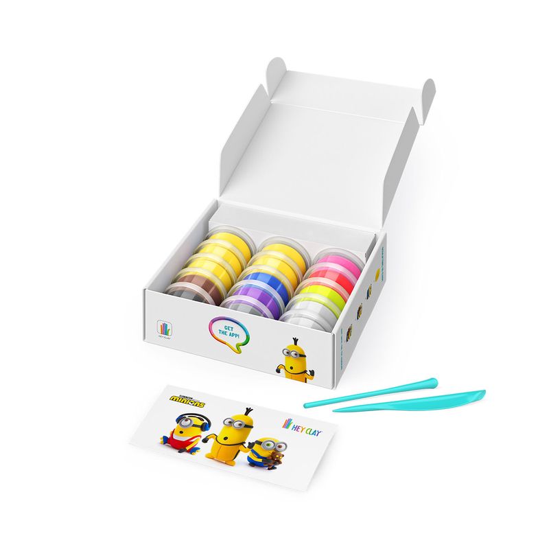¡Crea tus propios Minions con el Set de Plastilina Hey Clay! Este increíble set incluye 15 latas de plastilina de secado al aire en 10 colores diferentes, perfectas para dar vida a tus personajes favoritos de la película Minions. Con la aplicación interactiva de Hey Clay, disponible para móviles y tabletas, podrás seguir paso a paso los video-tutoriales y esculpir a Bob, Kevin, Stuart y otros divertidos Minions. La plastilina es ligera, suave y no se pega a las manos ni a las superficies, garantizando una experiencia de juego limpia y divertida. Ideal para niños a partir de 3 años, este set no solo fomenta la creatividad, sino también la motricidad fina y la coordinación ojo-mano. ¡Haz que la imaginación de tus hijos vuele con Hey Clay!