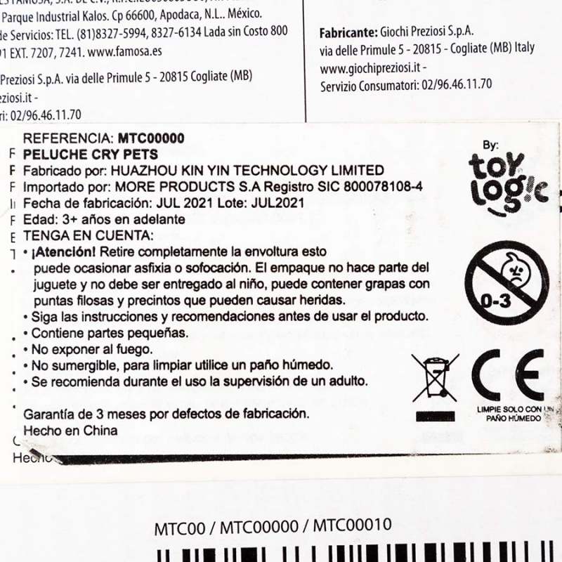 JugueteríaNiñaMascotasMascota Peluche Cry Pets Mtc00000
