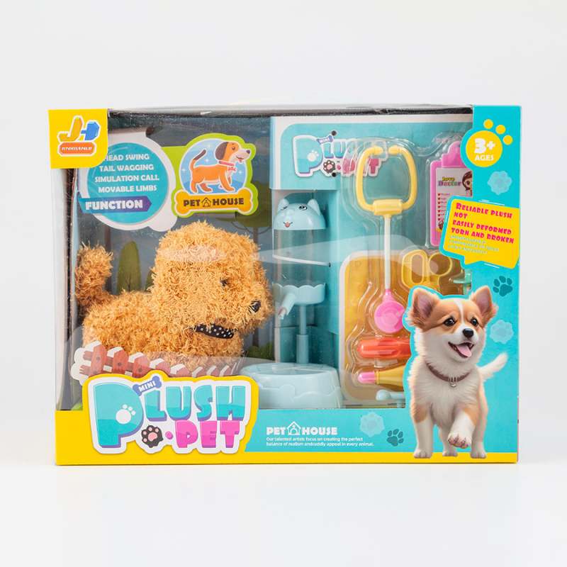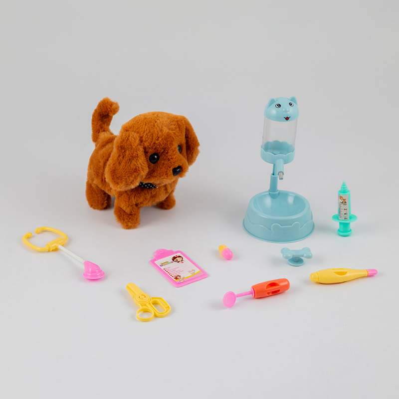 Adorable mascota interáctiva, simulación de rol, kit de cuidado veterinario, incluye 1 perro, 1 dispensador de agua, 1 jeringa, 1 tijera, 1 termómetro, 1 plato, 1 esponja, 1 capsula, 1 estetoscopio, 1 hueso, los niños pueden llevar este juguete a todos lados y cuidar a sus mascotas donde quiera que vayan, combina diversión y creatividad, ayuda a los niños a desarrollar empatía, y aprender la responsabilidad efectiva, requiere 2 pilas AA no inlcuídas, fábricado con materiales de alta calidad, dimensiones del producto 34x13x26cm. Edad recomendada de uso mayor de años.
