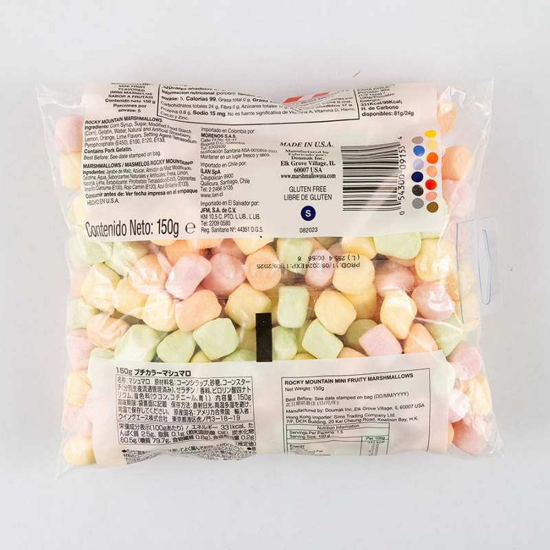 Deliciosos masmelos Rocky Mountain de textura ligera y esponjosa, con increíbles sabores variados. Se asan a la perfección sobre un fuego abierto.