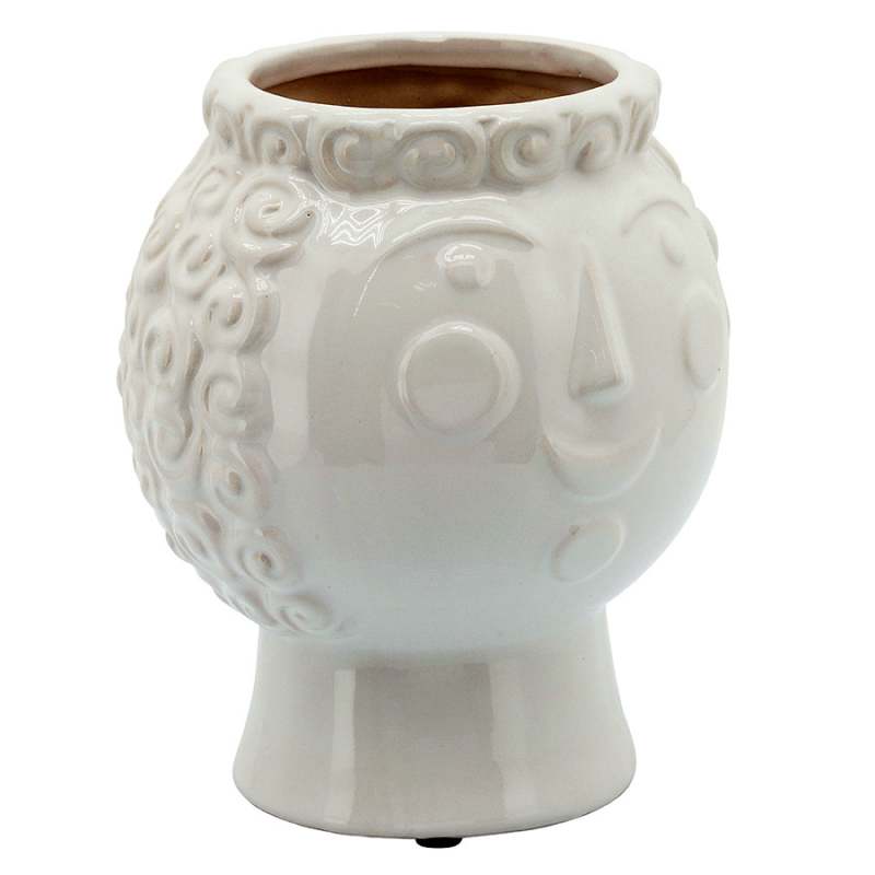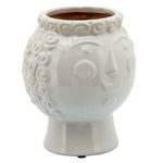 matera 14946-04 con cara estilo de abuelita 15cms en ceramica, color blanco