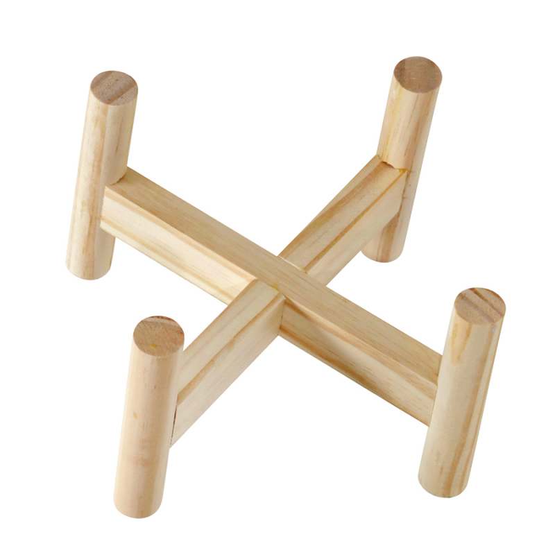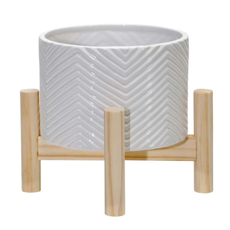 Matera En Ceramica Color Blanco Con Base En Madera 15Cm
