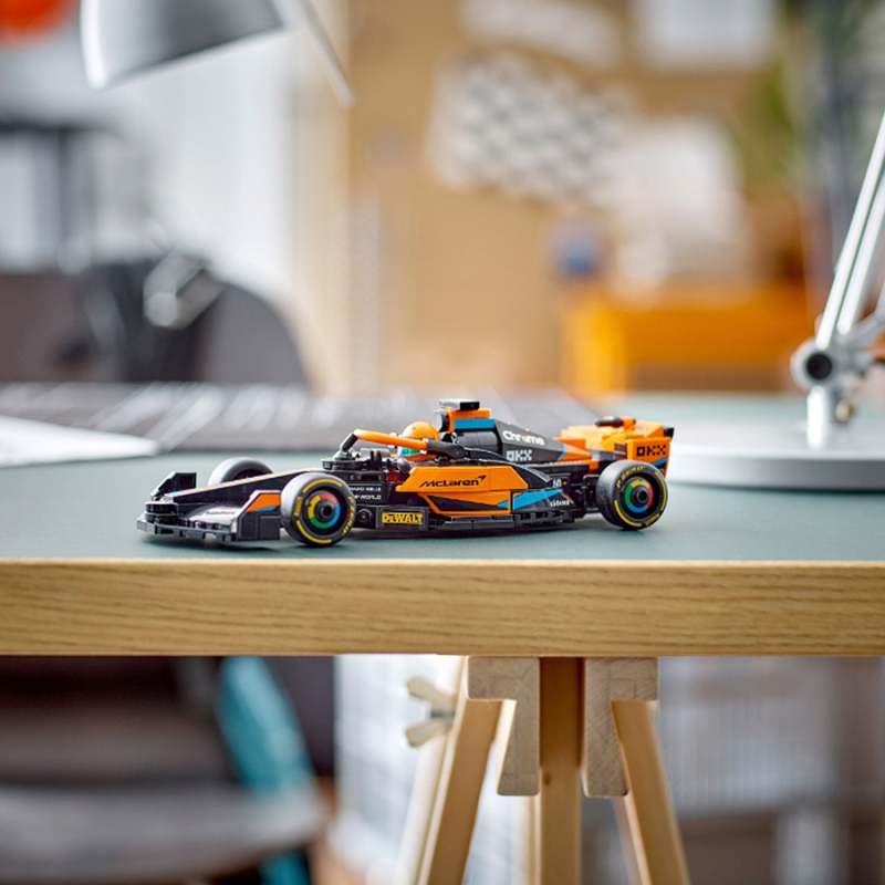 Descubre el Auto de Carreras de Fórmula 1 McLaren 2023 LEGO® Speed Champions (76919), un vehículo de juguete que a los niños y las niñas de 9 años o más les encantará construir, exhibir y coleccionar. Este aerodinámico auto de F1 de juguete reproduce una serie de inconfundibles detalles de diseño del monoplaza original que celebró con orgullo el 60 aniversario de McLaren Racing y compitió en el Campeonato Mundial de Fórmula Uno de 2023. El modelo del vehículo McLaren incluye numerosas características de gran realismo: los colores distintivos negro y papaya, los logotipos de los patrocinadores del equipo, las ruedas con el nombre de Pirelli y el halo de seguridad papaya. El auto de este kit construible viene con una minifigura de un piloto. -No. De piezas: 245 - Fabricado por: LEGO SYSTEM A/S - Material: Plástico ABS ¡ATENCIÓN! este producto no es apto para niños y niñas menores de 3 años. Remueva todo material de empaque y etiquetas antes de entregar este producto a los niños. No comestible. Riesgo de ahogamiento. Utilizar bajo la vigilancia de un adulto.