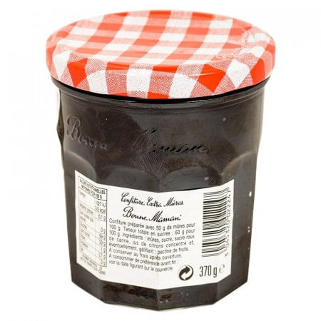 Mermelada de mora . Hecha con mora, azucar, azucar morena de caña, jugo de limón concentrado, pectina de frutas. Sabor a mora. Empaque sofisticado. Contenido 370 gr. Elaborada en Francia. Conservese refrigerado después de abrir, Vencimiento y lote en el borde de la lata.
