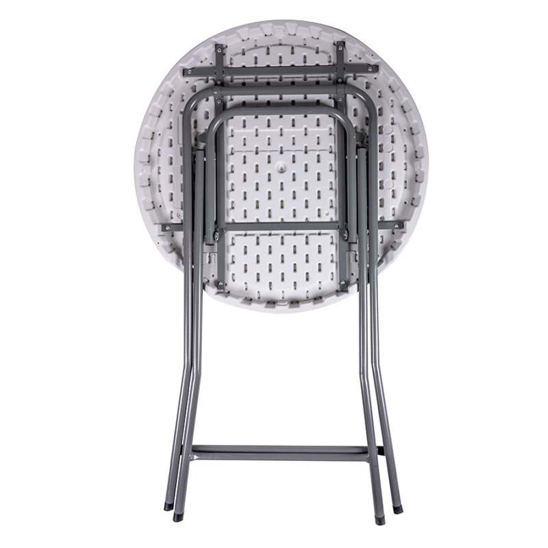 Mesa plegable D80x110cm en Polyetyleno con estructura en acero Color Blanco practica para usos en jardines o terrazas con Estabilidad adecuada para espacios abiertos como terrasaz, balcones y jardines