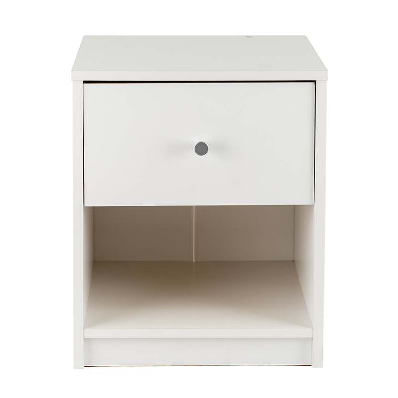 La mesa de noche May es la solución perfecta para espacios pequeños. Cuenta con un cajón y espacio de almacenamiento adicional debajo, complementando cualquier decoración con su diseño simple.