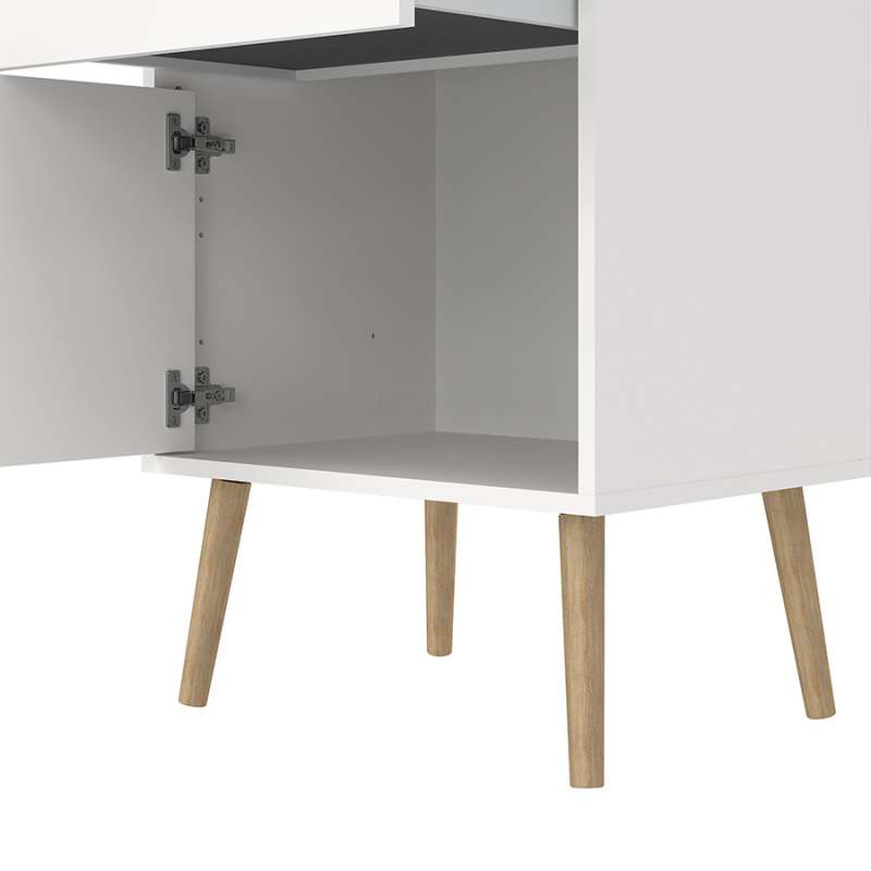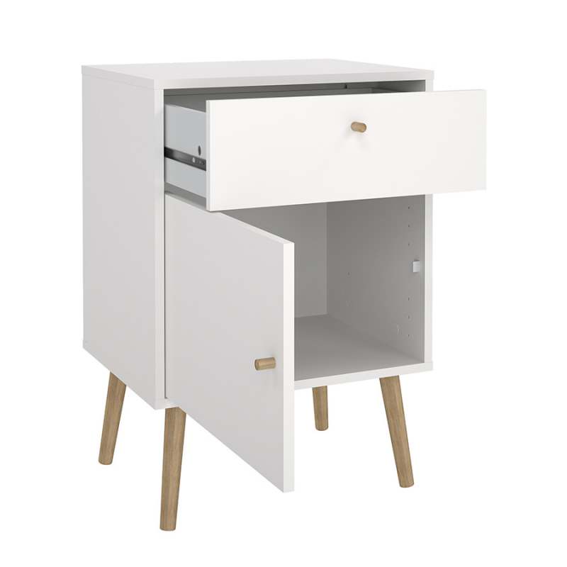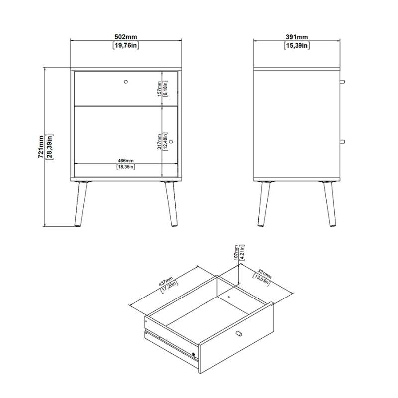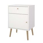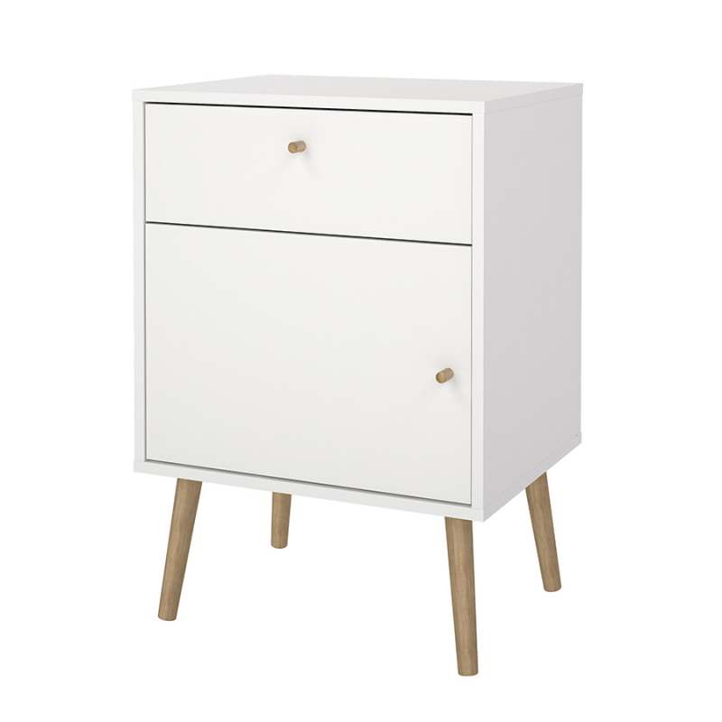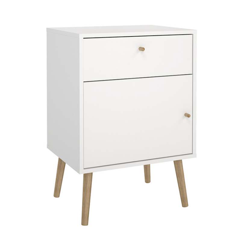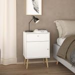 La mesa de noche Bodo es alta, por lo que combina a la perfección con camas altas. Su diseño versátil y atemporal incluye un cajón para guardar cosas y un compartimento con puerta para guardarlas. Ancho 50,2 centímetros Profundidad 39,1 centímetros Altura 72,1 centímetros