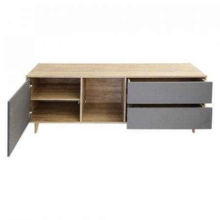 Rack Para Tv Salem RMP Genérico Café/Gris Equipar tu hogar con los utensilios y accesorios de mejor calidad, es tan importante que no puedes dejar de tener lo mejor del mercado en tu casa, equipar tu casa, es tener un espacio con los utensilios que complementan tu personalidad y tienen la capacidad de funcionar a la perfección para ti y para los tuyos, tenerlos hace que tengas un lugar en el que estés 100% cómodo. Esta marca fabrica productos auténticos, así como este rack para Tv Ideal para disfrutar y divertirte, en casa te asegura un verdadero producto duradero, con la ventaja de que puedes usarlo de manera fácil, perfecto para el día a día, una reunión familiar o con los amigos, que hará de tu hogar un lugar perfecto para un buen rato de disfrute y tendrás unas copas que serán agradables a la vista, no puedes dudar en tener y disfrutar de este producto en tu casa. Este increible rack para tv esta elaborado en madeflex de color café con puertas color gris, de superficie lisa, con un contraste mate,una forma rectangular, tiene patas en forma triangular, es ideal para todo tipo de espacio, en el costado izquierdo tiene dos cajones que abren con riel, en la costado derecho tiene puerta con dos compartimientos para almacenar objetos, es practico y tiene un diseño moderno, la puerta tiene sistema de click para su apertura así que no lo dudes y cómpralo. En la costado derecho tiene puerta con dos compartimientos para almacenar objetos. La puerta tiene sistema de click para su apertura. Superficie lisa con contraste mate de forma rectangular. Medidas: 58,4x158,4x38,5 CM.