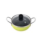 Mini sartenes en color surtido (verde, rojo y calipso) elaborados en aluminio prensado con antiadherente y mango de bakelita soft touch. Después de cada uso, lave la pieza a mano con jabón neutro y agua tibia, usando una esponja o paño suave. Nunca utilice lejía ni productos que contengan cloro o sosa, como limpiadores de horno, que puedan dañar el acabado de la superficie. No utilizar esponjas metálicas ni virutillas para su lavado. 6 meses de garantía solamente por defectos de fabricación; no cubre manchas externas, golpes, roturas o cualquier alteración que en la manipulación pueda suceder no aplica si el producto tiene signos de mal uso como rayones o raspaduras, golpes o laceraciones internas ocasionadas por utensilios cortopunzantes. Los productos con recubrimiento en cerámica no deben ser sometidos a altas temperaturas, solo en medias y bajas, ya que la cerámica en altas temperaturas se quema, por lo tanto, se daña. Los productos marcados como 'PRODUCTO SURTIDO' pueden no ser idénticos a los que aparecen publicados en las imágenes. Las imágenes son ilustrativas. Al comprar un producto identificado como producto surtido, aceptas que podrás recibir un producto con características y atributos tangibles diferentes a los que aparecen en las imágenes del sitio o la publicidad. Los productos surtidos mantendrán las propiedades físicas, químicas y técnicas necesarias para su funcionamiento y uso de acuerdo a su naturaleza.