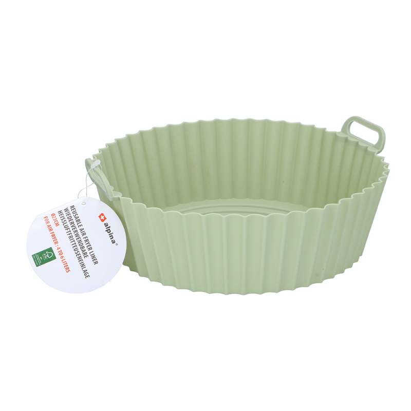 Molde Redondo Alpina Para Airfryer, De 23 Cm De Diámetro, En Silicona Reciclable Y Colores Surtidos. Cuenta Con Agarraderas Laterales, Ideal Para Diversas Preparaciones Culinarias Como Freír Con Aire, Hornear Y Cocinar Al Vapor. Resiste Temperaturas De Hasta 230 °C (450 °F), Mejora La Eficiencia De Cocción Y Mantiene Tu Freidora Limpia. Lavar Con Agua Tibia Y Jabón. Los Productos Marcados Como “Producto Surtido” Pueden No Ser Idénticos A Los Que Aparecen Publicados En Las Imágenes. Las Imágenes Son Ilustrativas. Al Comprar Un Producto Identificado Como Producto Surtido, Aceptas Que Podrás Recibir Un Producto Con Características Y Atributos Tangibles Diferentes A Los Que Aparecen En Las Imágenes Del Sitio O La Publicidad. Los Productos Surtidos Mantendrán Las Propiedades Físicas, Químicas Y Técnicas Necesarias Para Su Funcionamiento Y Uso De Acuerdo Con Su Naturaleza.