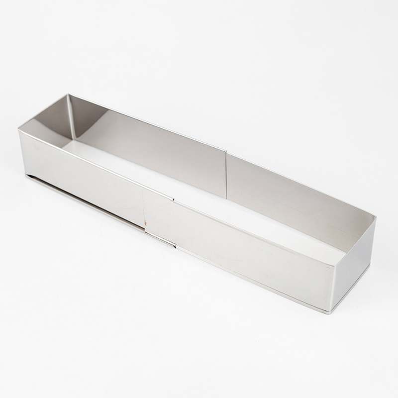 Molde extensible de 27 a 40 cm rectangular para pasteleria Color: Plateado Materiales: Acero Medidas: 6,9x23x9,1Cmts Marca: Cook Concept
