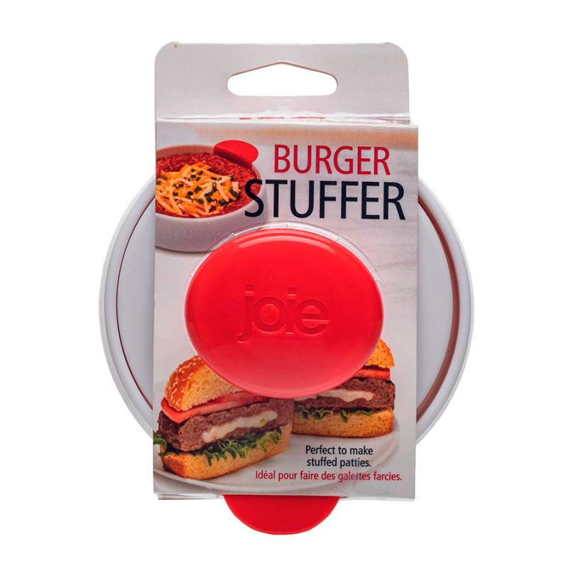 Utensilio para rellenar hamburguesas. Rellena la carne de tu hamburguesa con queso, champiñones o algún otro alimento con ayuda de este utensilio. También puedes hacerlas sencillas.