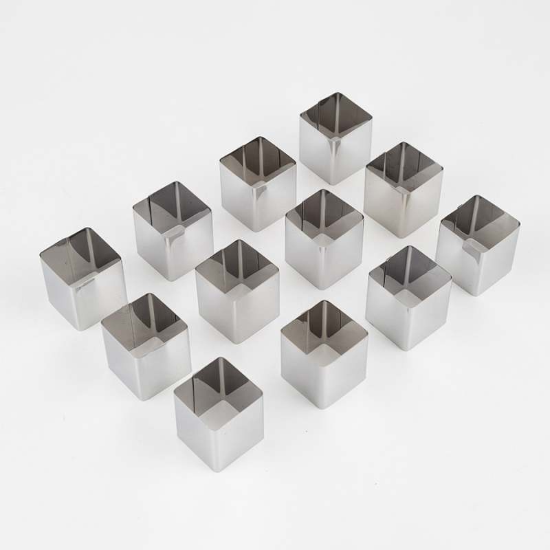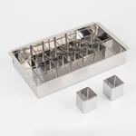 Molde KP5523 setx12 en cubos para pasteleria para darle forma a los pasteles cuadrados Color: Plateado Material: Acero inoxidable Medidas: 31x18x5Cmts Marca: Lili Cook