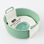 Fabricado en silicona de alta resistencia, este molde ofrece una solución flexible y duradera para diversas preparaciones de repostería y cocina. Su diseño circular en color verde cuenta con una estructura que facilita un desmolde limpio y sencillo, manteniendo la forma de los alimentos. Posee dos asas laterales integradas que aseguran un agarre firme y cómodo durante su manipulación. Al ser un material apto para contacto con alimentos y libre de BPA, es resistente a temperaturas extremas, lo que permite su uso seguro en horno, microondas y congelador, además de ser fácil de lavar.