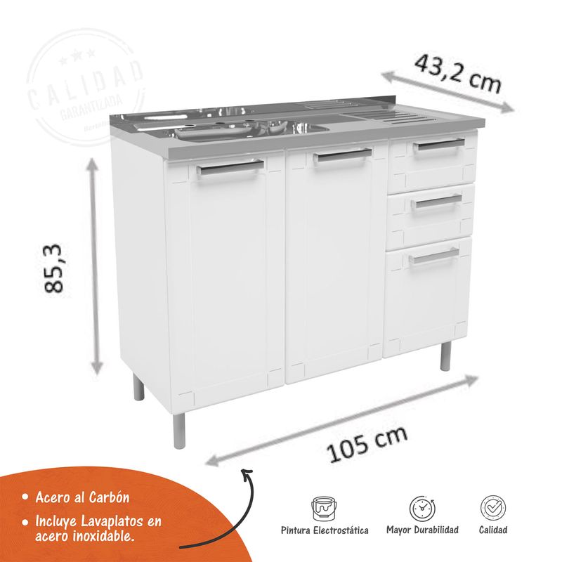 La Cocina es uno de los lugares preferidos, tanto para los que adoran cocinar como para sus espectadores, es por esto que, Bertolini, líder de mercando en Cocinas de Acero en Brasil les trae este lindo mueble base con lavaplatos Bertolini de Acero Modelo Multipla. tres puertas y dos cajones Tiene un diseño ultra moderno y sofisticado, muy resistente y duradero, seguro relucirá espectacularmente en su casa.