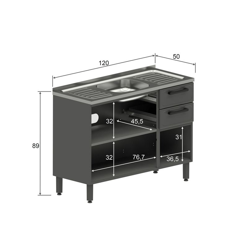 Mueble Inferior Bertolini 120 cm Con Lavaplatos Central