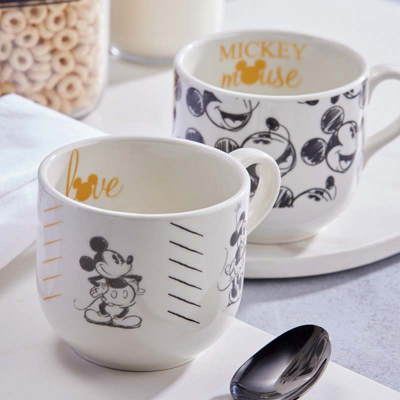 Mickey y Minnie son la pareja perfecta para empezar el día. Regálate un poco más de felicidad empezando el día con una buena taza de café con un divertido diseño vintage de Mickey y Minnie. Apto para microondas y lavavajilla. Aprobado para el uso en contacto con alimentos.