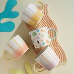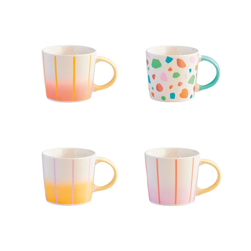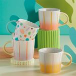 Con colores vibrantes y un diseño inspirado en el terrazo, estos mugs son una pieza llena de personalidad. Su combinación de tonos frescos y patrones dinámicos lo convierten en el accesorio ideal para quienes desean dar un toque de alegría y modernidad a sus momentos de café o té.