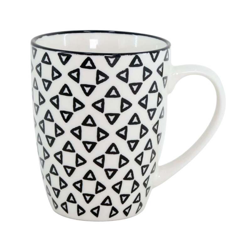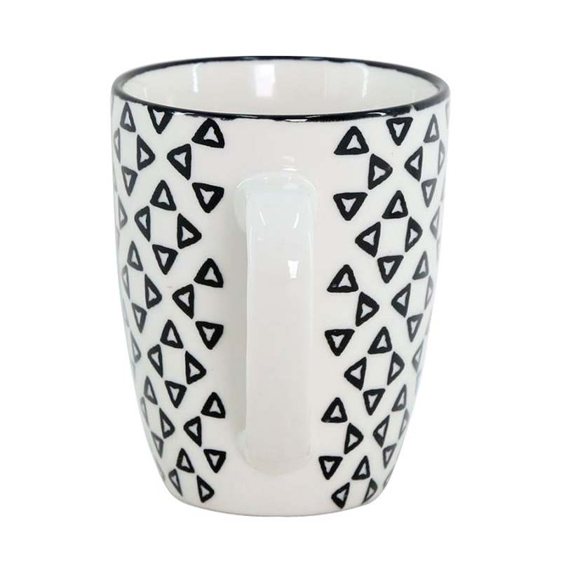 - Material: Porcelana de alta calidad, resistente y duradera. - Capacidad: 320 ml, ideal para disfrutar de café, té o cualquier bebida caliente. - Diseño: Estilo geométrico en color negro, que aporta un toque moderno y sofisticado. - Versatilidad: Perfecta para uso diario en casa, en la oficina o como regalo. - Confort: Asa ergonómica que proporciona un agarre cómodo y seguro. - Estilo: Su diseño elegante combina fácilmente con diferentes tipos de decoración.