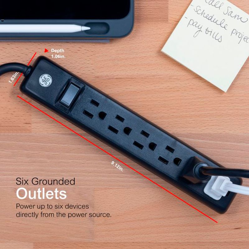 Multitoma Ge 6 Salidas 60 Cm Negro 1875 W 15 Am