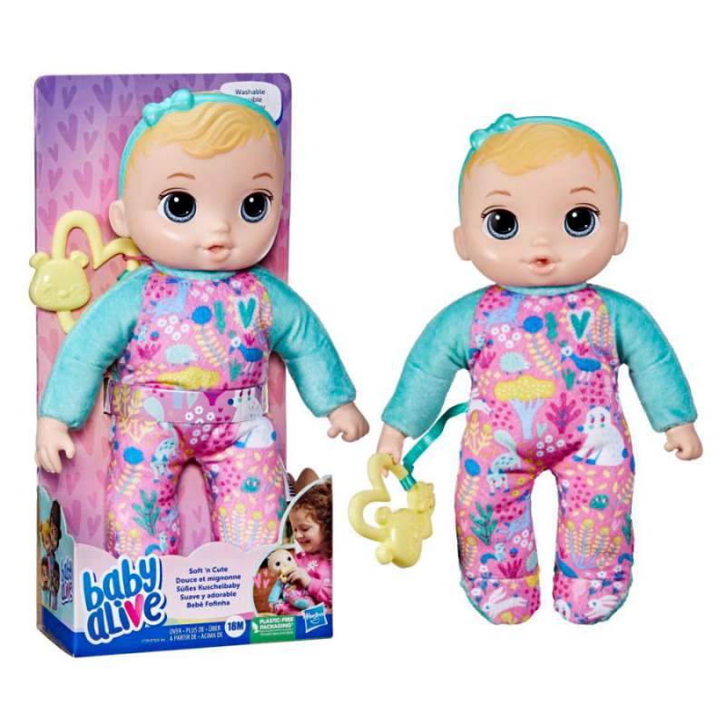 •Con un cuerpo blandito, la muñeca Suave y adorable de Baby Alive es perfecta para abrazar a la hora de dormir. Es un muñeca supersuave, diseñada especialmente para niños y niñas a partir de 18 meses. •Juega a que le das a tu bebé su accesorio mordedor que parece un tierno oso. •Esta suave muñeca de 28 cm lleva un traje inspirado en los animales y una cinta aguamarina con lazo en el pelo. Además, sus pulgares pueden colocarse en la boca, ¡como un bebé!.